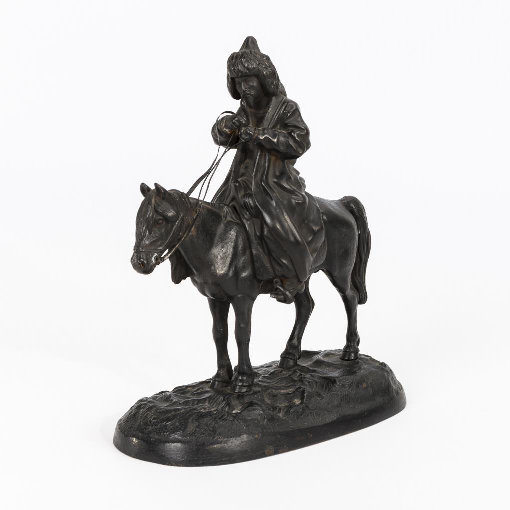 Eisenguss geschwärzt. Russland. Ende 19. Jh. Kyrillisch bezeichnet mit undeutlichem Zusatz, im Sockel Marke der Gießerei Kasil. 22 x 18,5 x 9,5 cm.