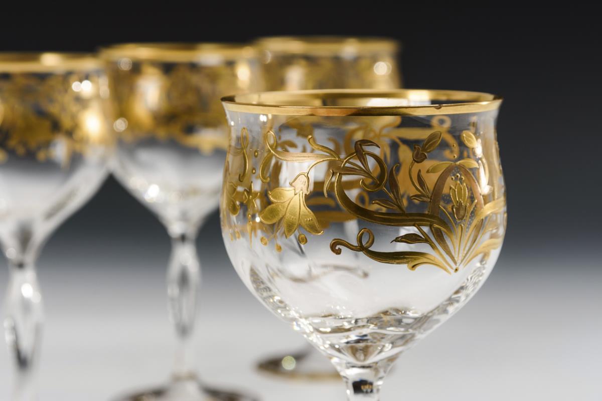4 Weingläser mit Goldmalerei.