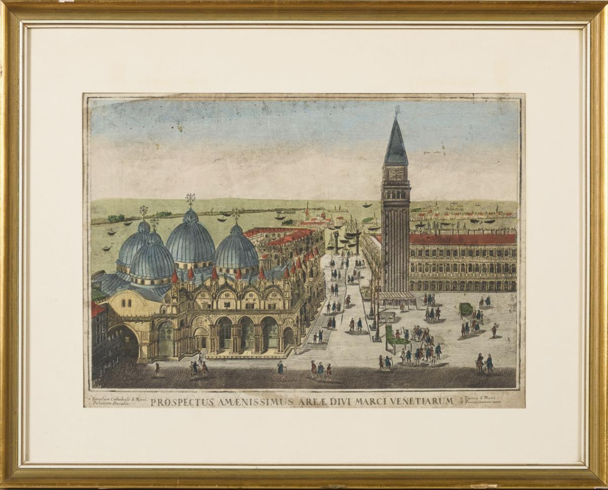 "Prospectus Amaenissimus Areae Divi Marci Venetiarum", aus einer Folge von 4 Ansichten Venedigs. Stockfleckig.