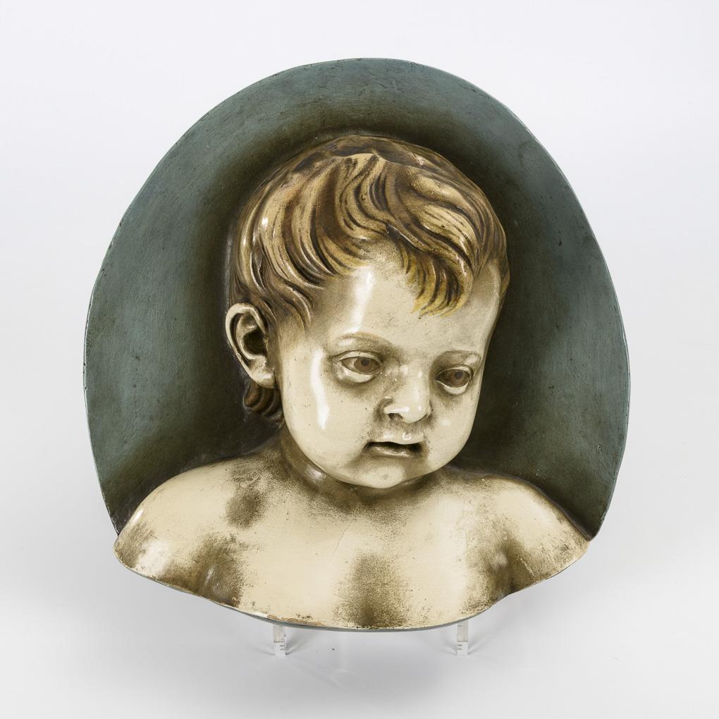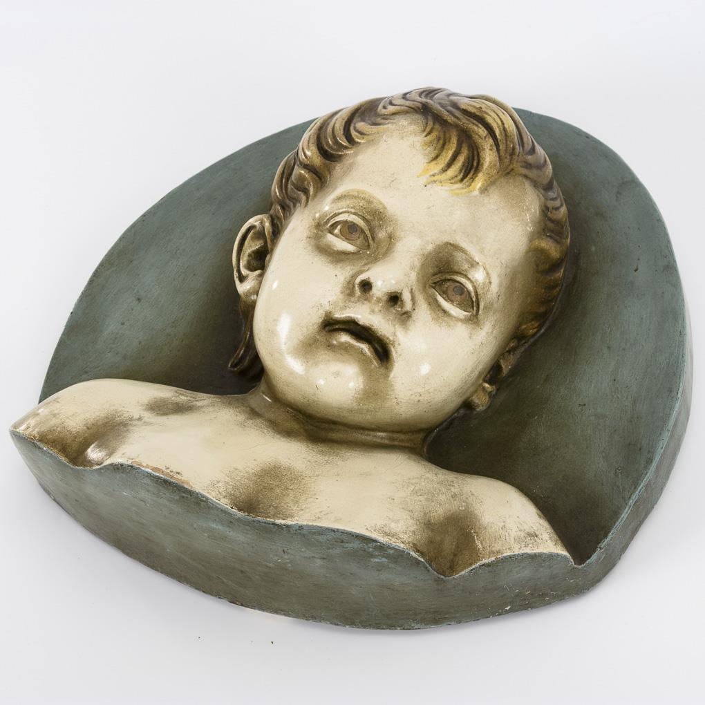 Lebensgroße Büste eines Knaben. Haarriss auf dem Kopf, einige Alters-/Gebrauchsspuren.