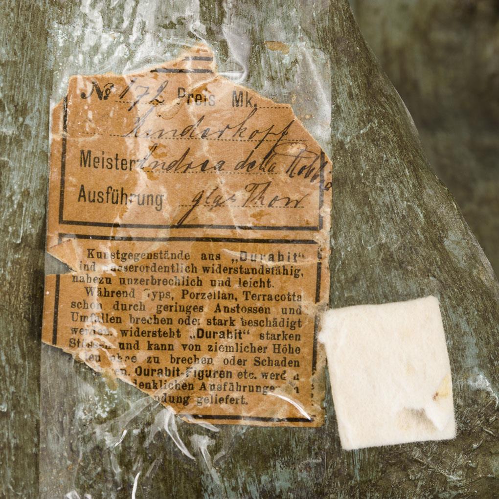 "Durabit" polychrom gefasst. Anfang 20. Jh. Verso alter Klebezettel mit Materialbezeichnung. 32 x 32 x 12 cm.