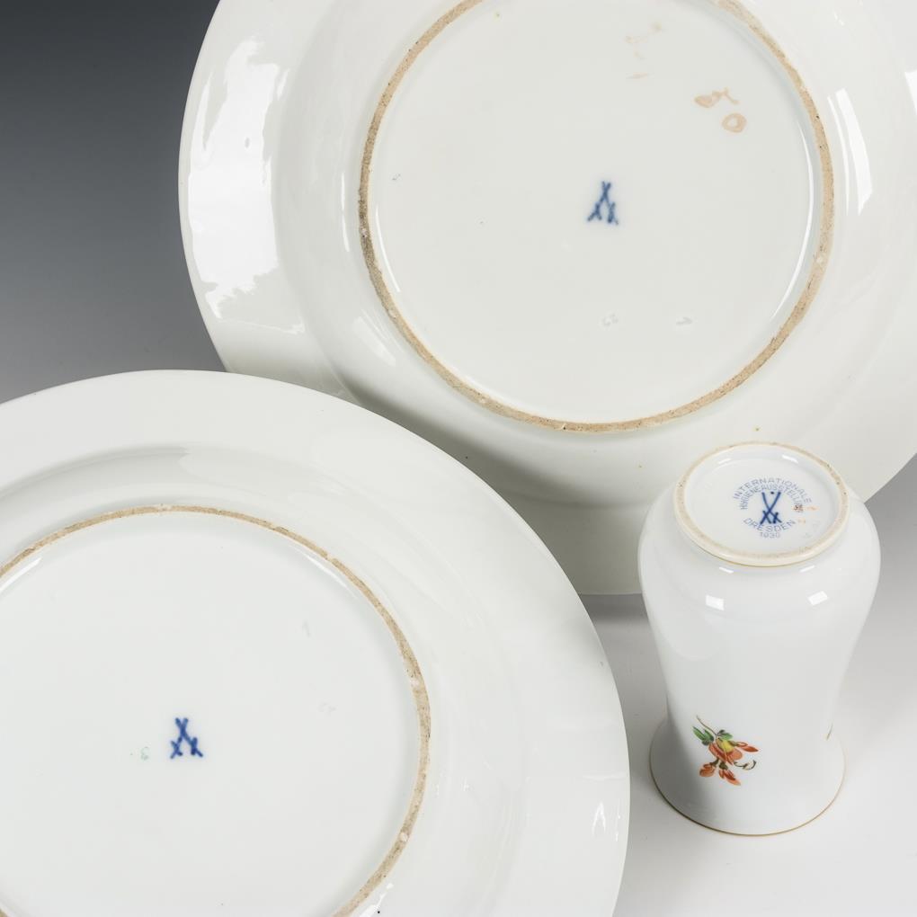 2 Teller und Vase mit Blumenmalerei. Meissen.
