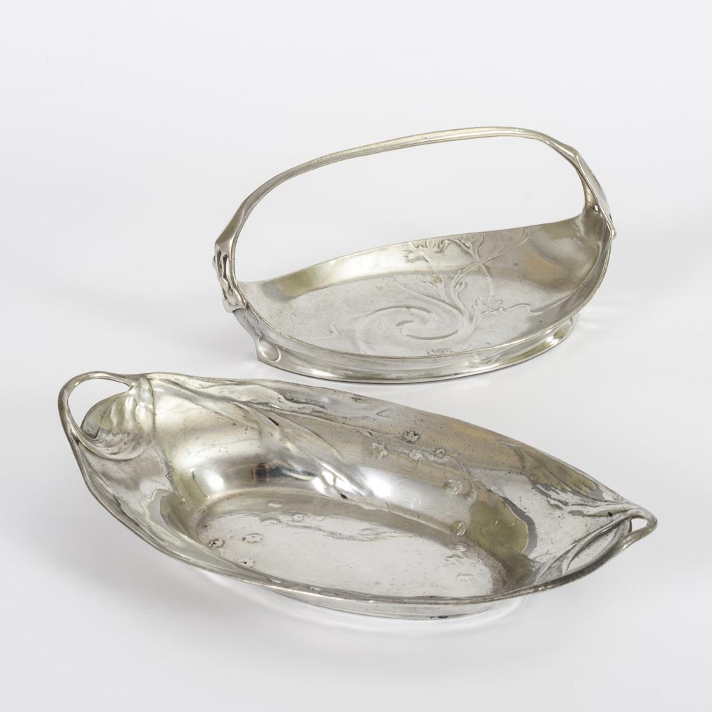 2 Schalen Jugendstil-Silberzinn. 1x Kayserzinn.