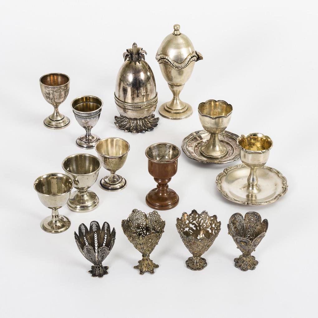 Sie befinden sich hier:   Startseite Kategorien Silber Konvolut 14 Eierbecher + 1 Lacklöffel