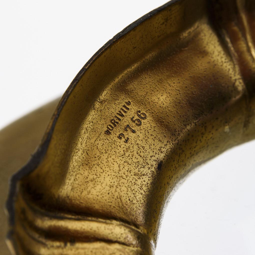 Zinn goldbronziert, teils silberfarbener Überzug. H 13 cm (ohne Henkel), Ø 24 cm.