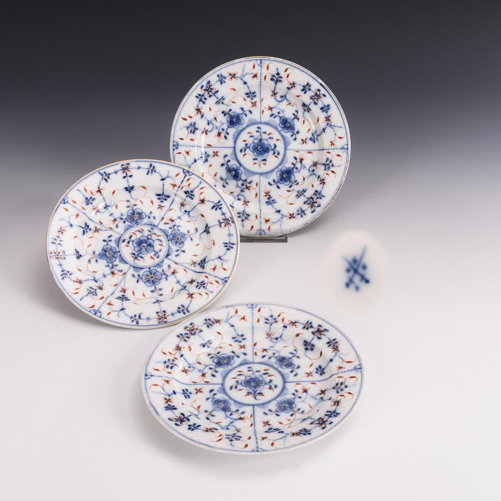 Unterglasurblau bemalt, rot und gold gehöht. Ø 20 cm.