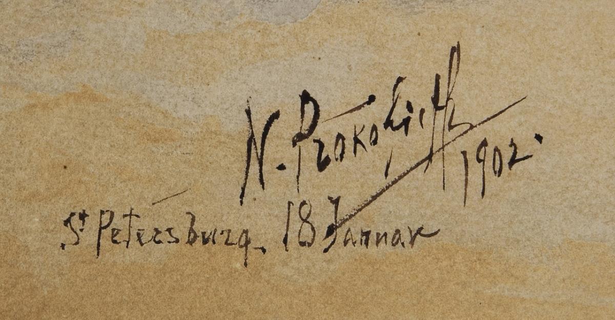 Prokofieff (Prokofjew), russischer Landschaftsmaler, Aquarellist, Grafiker. Lebensdaten unbekannt * Partnerauktion Bergmann.