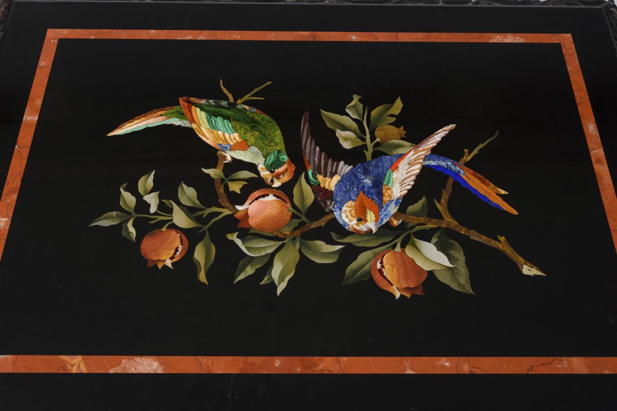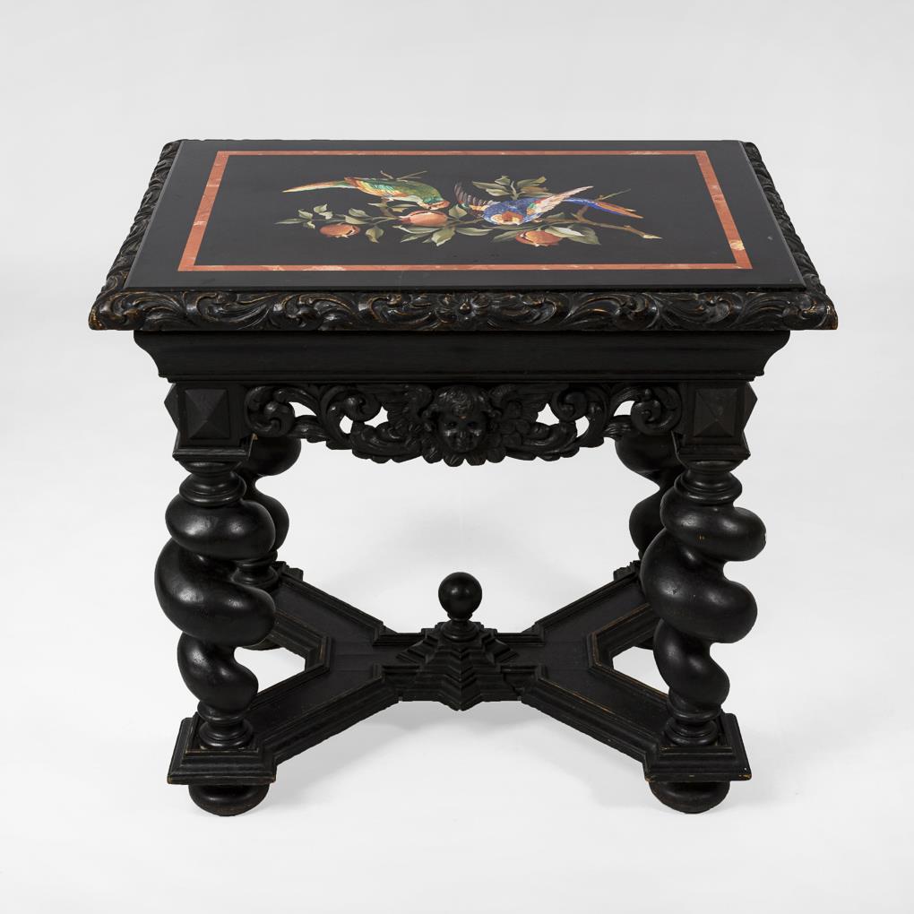 Neobarock-Tisch mit Pietra-Dura-Platte.