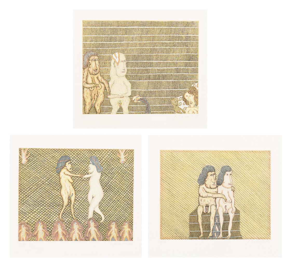 3 Farbradierungen. Bleistiftsignatur, Prägestempel "Radierwerkstatt Kurt Zein Wien" und "Edition Brusberg Hannover". [19]78. Exemplar: 11/100 | 59/100 | 18/100.