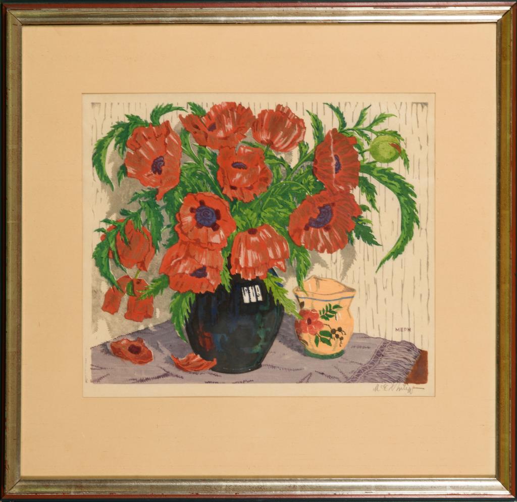 Undeutlich signiert: Stillleben mit Mohnblumen-Bouquet