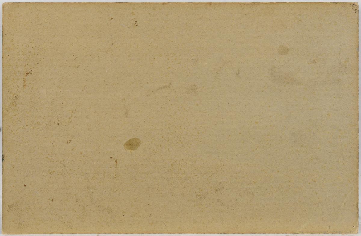 Gesicht eines Bärtigen vor grünem Hintergrund. Kleine Löcher in den Ecken.
