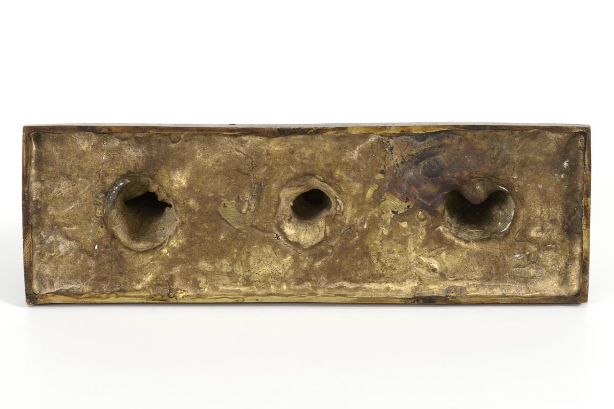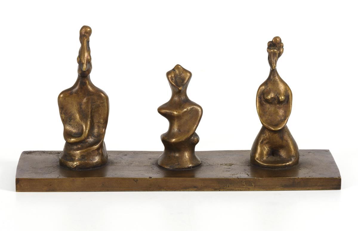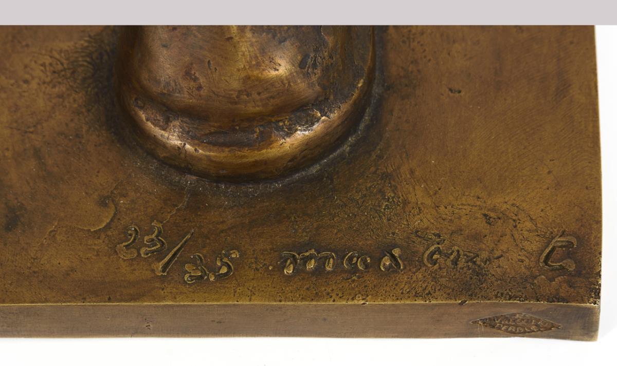 Bronze patiniert. Bezeichnet mit Zählung 23/25, undeutliche Gießermarke "Cire perdue Valsuani". Dazu Foto vom Werk, auf der Rückseite "Certificat" vom Sammler, Autor und Kritiker Jacques Putman aus dem Jahr 1976. Des weiteren Rechnung der Galerie Knabe/Frankfurt vom Jahr 1993. Gesamt 14,5 x 29,8 x 9,5 cm.