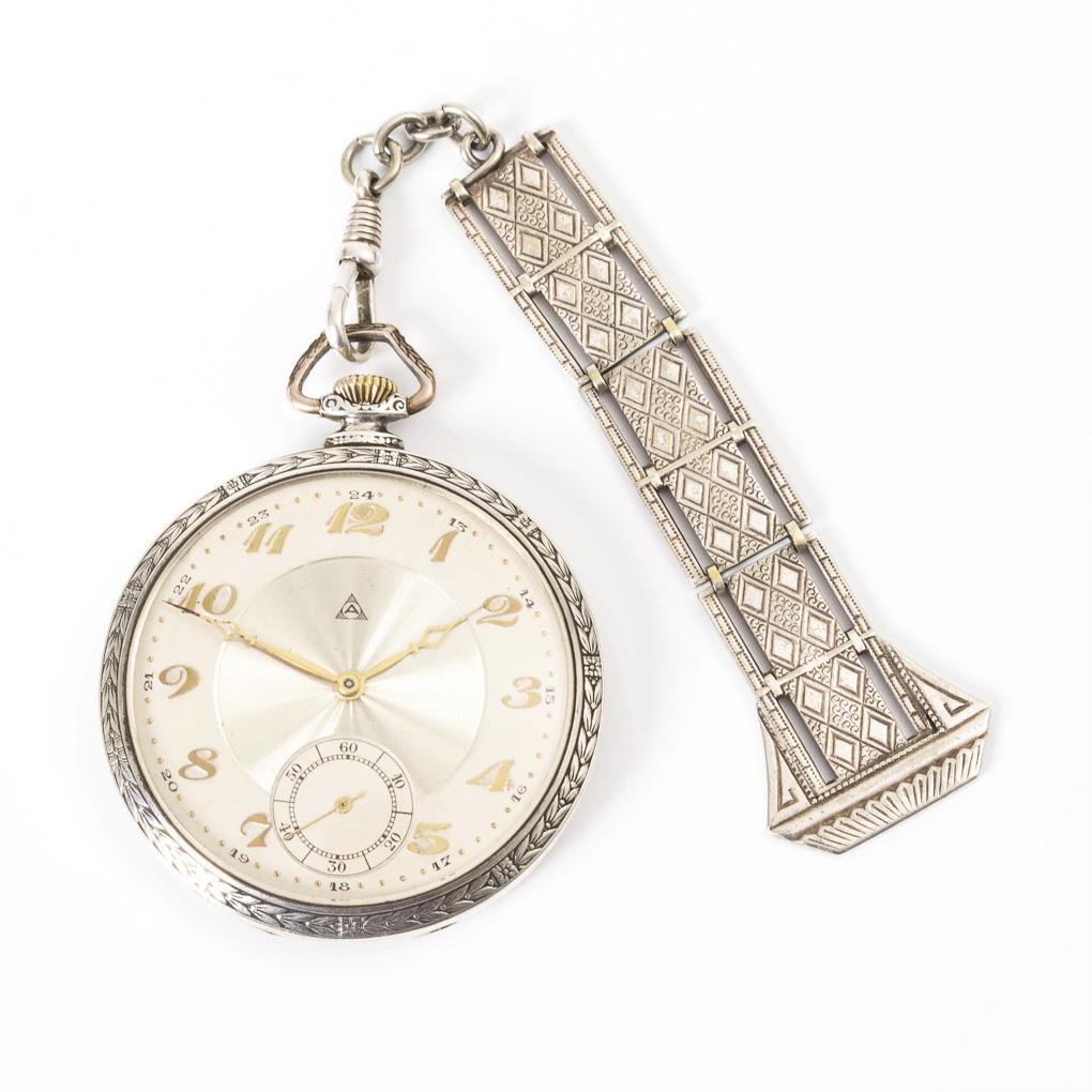 Silberne Art-déco-Frackuhr mit Châtelaine. Alpina.