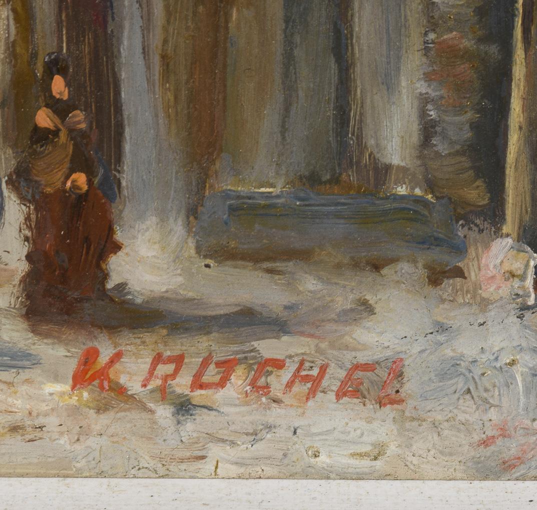 Personen auf den verschneiten Straßen der Stadt mit der Annasäule.