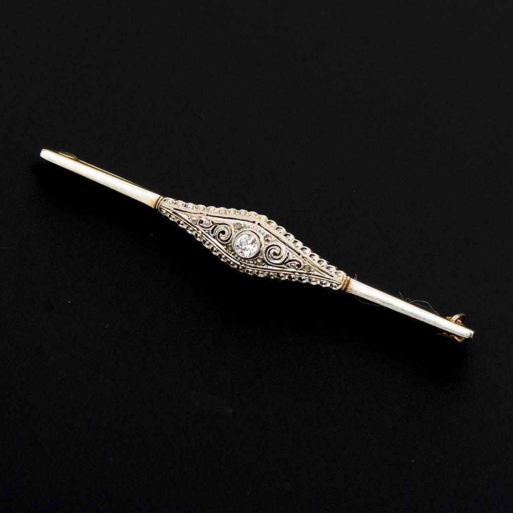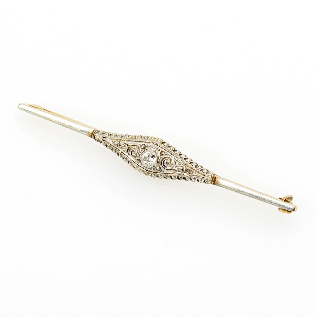 Art-déco-Stabbrosche mit Altschliff-Brillant und Diamantrosen.