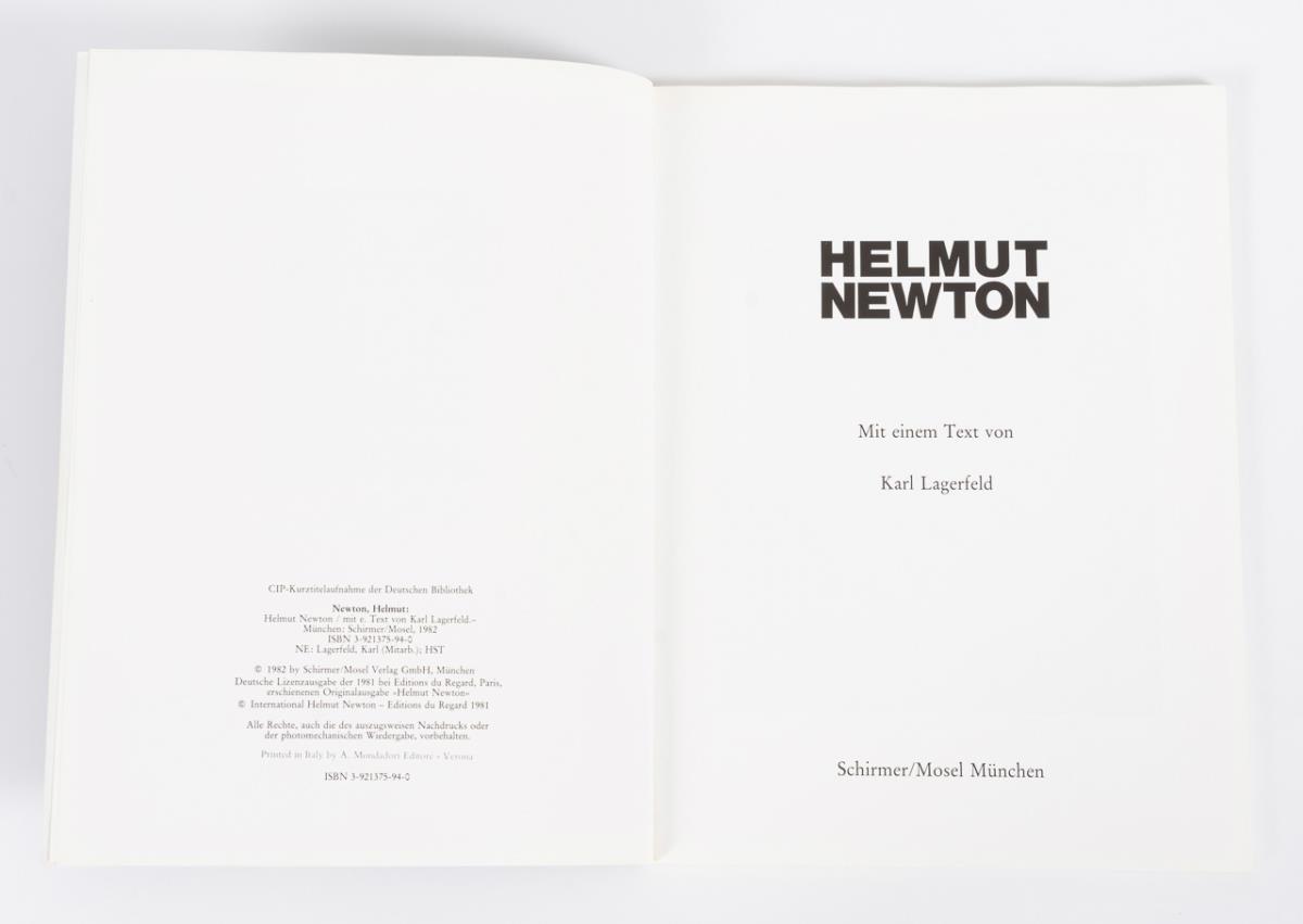 "Helmut Newton's Illustrated. Number 4. Dr. Phantasme". Broschur, 32 Seiten, 38,5 x 30 cm. / "Helmut Newton" mit einem Text von Karl Lagerfeld. Schirmer/Mosel, München, 1982. Broschur, 80 Seiten.