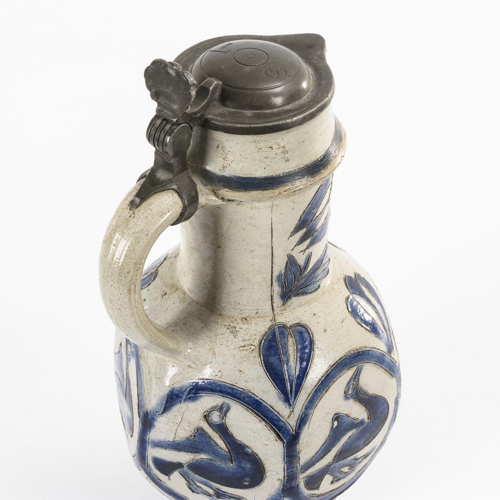 Enghalskanne mit Vögeln und Blumen. Westerwald/Hessen.