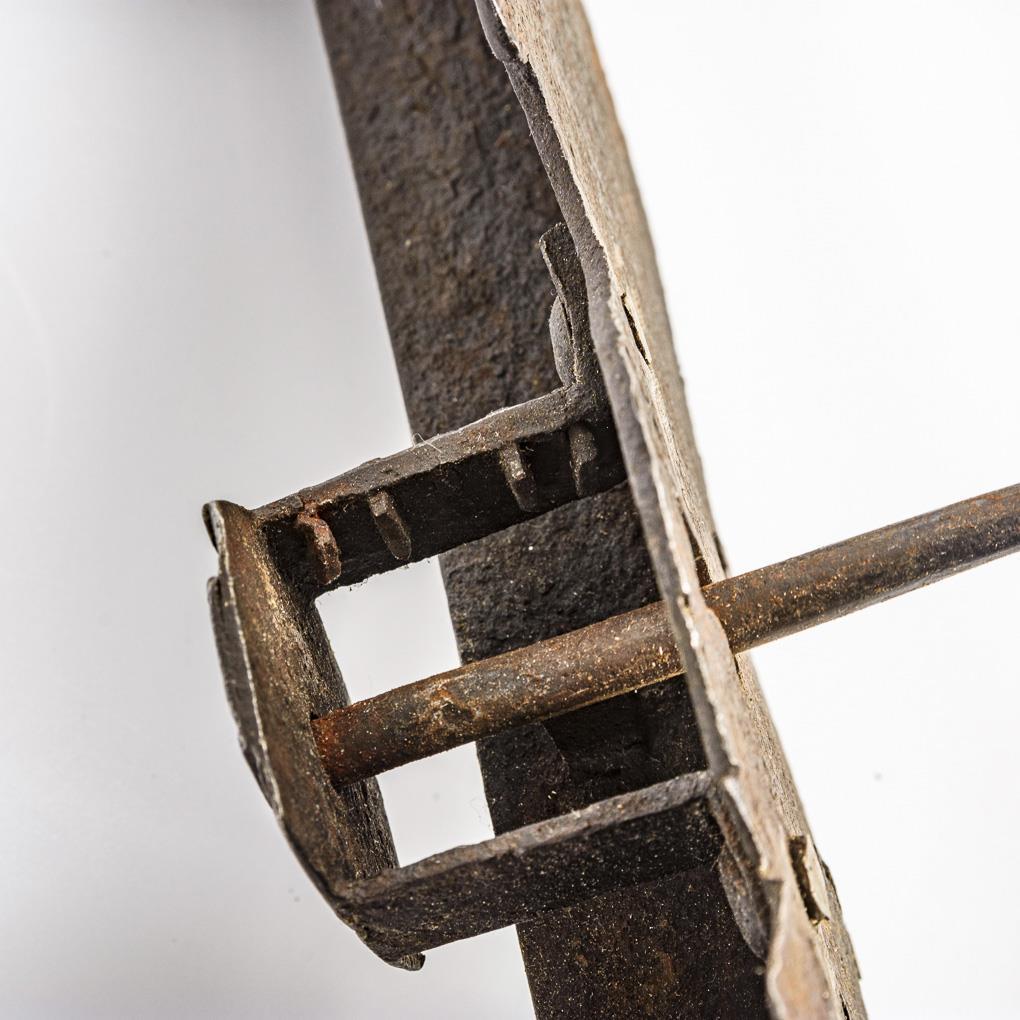Schmiedeeisen. L Schloss 29 cm, Dornmaß 14,5 cm, L Schlüssel maximal 31 cm.