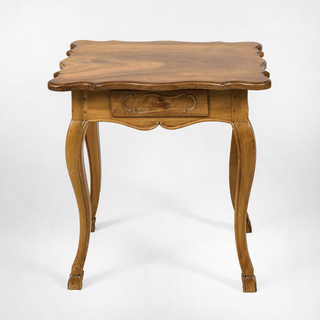 Kleiner Salontisch in barocker Formensprache, mit geschweifter Zarge und Zargenschub. Alters-/Gebrauchsspuren.