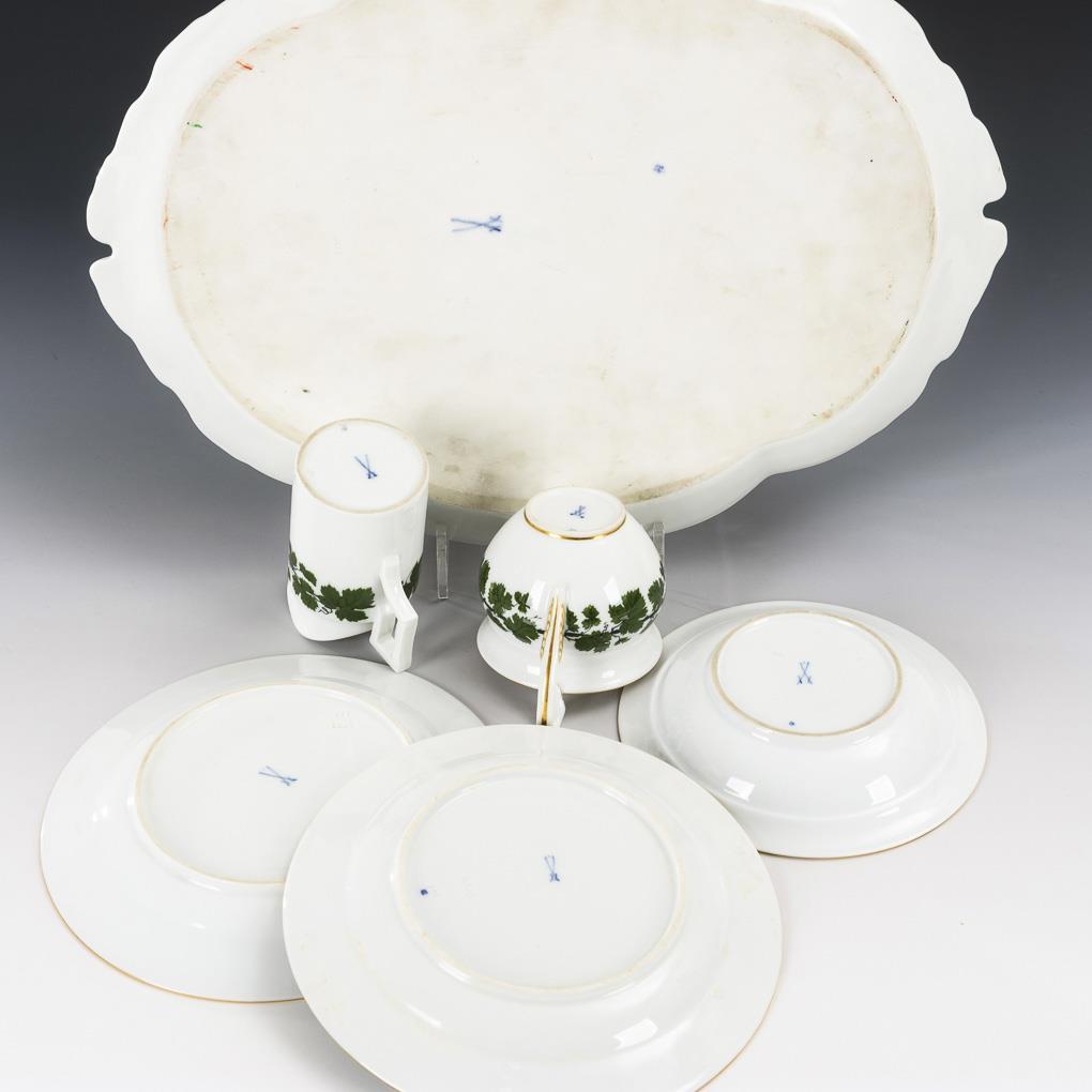 6 Porzellane mit Weinlaubdekor. Meissen.