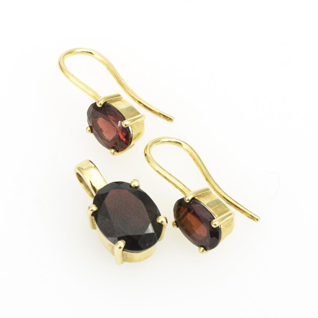 Gelbgold 333 gestempelt. Anhänger 1,8 x 0,9 cm. Ohrhänger 2 x 0,7 cm. 6,2 g.