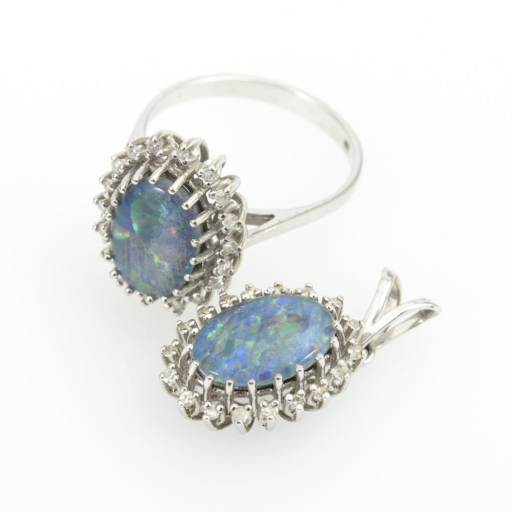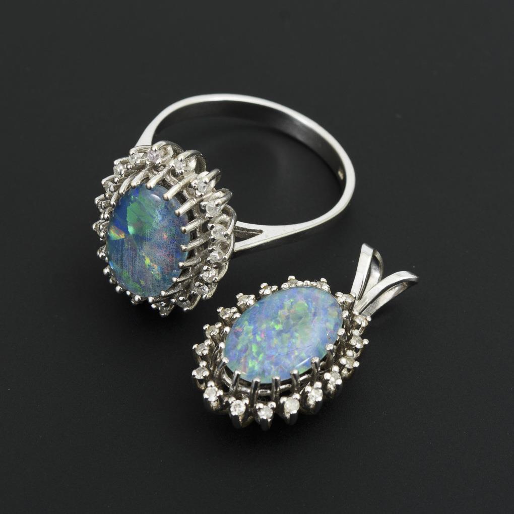 Ring und Anhänger mit Opaltripletten und Diamanten.
