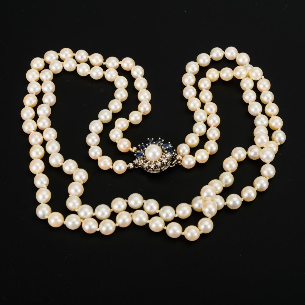 Zweireihige Perlenkette mit Saphiren und Diamanten