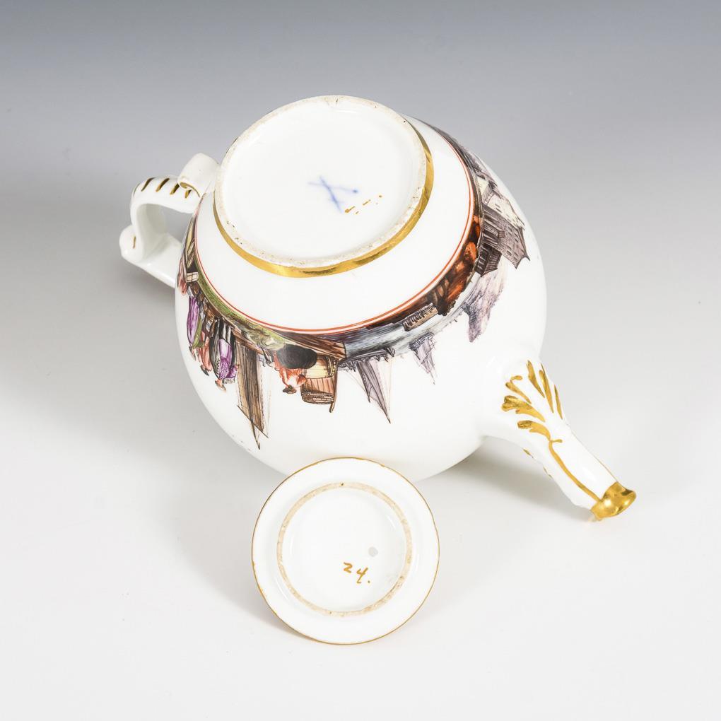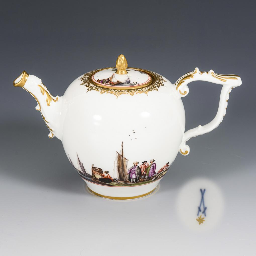 Barockes Teekännchen mit Kauffahrteimalerei. Meissen.