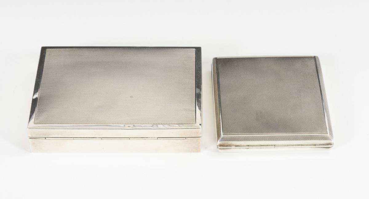 Sterlingsilber. 2,5 x 12 x 9,5 cm und 1 x 10 x 8 cm. Gesamtgewicht: 305 g.