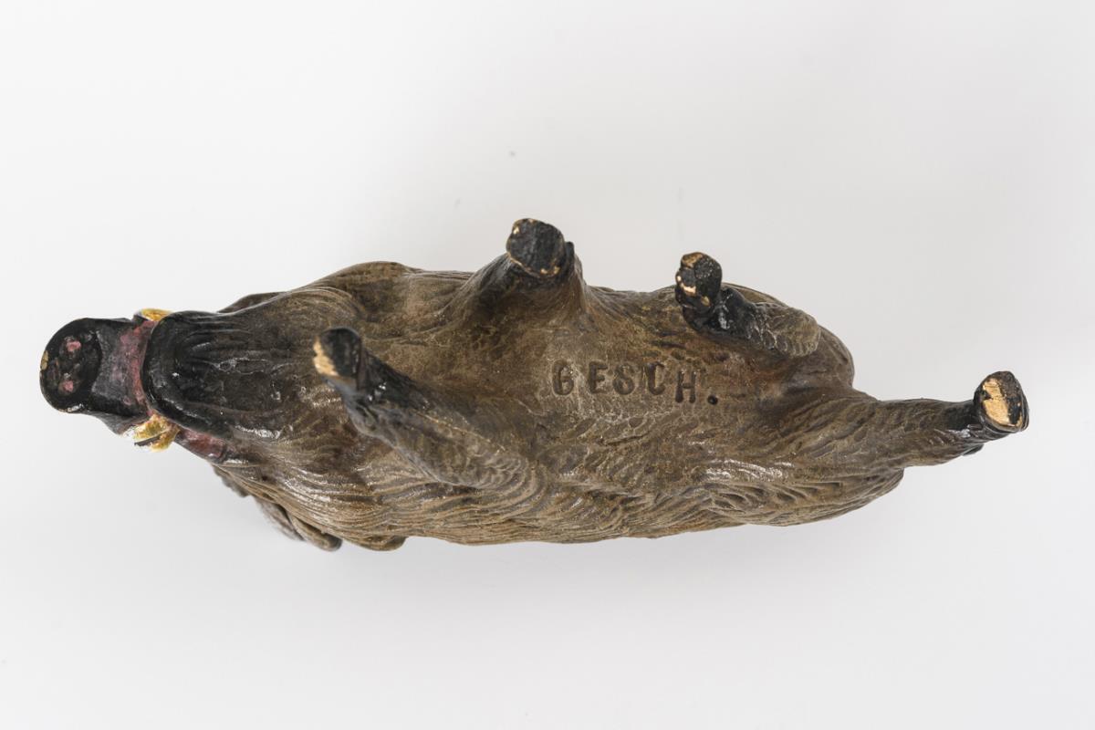 Bronze polychrom gefasst. "Gesch.". H 5 cm, L 8 cm.