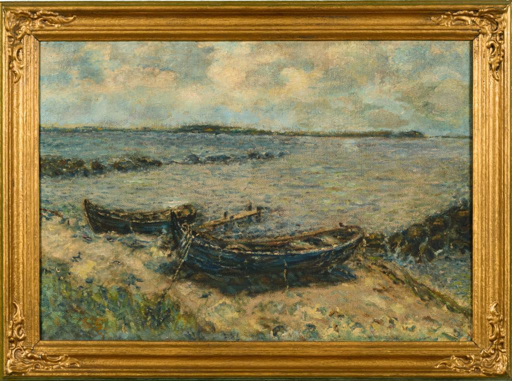 Monogrammist "ES": Fischerboote am sonnigen Strand