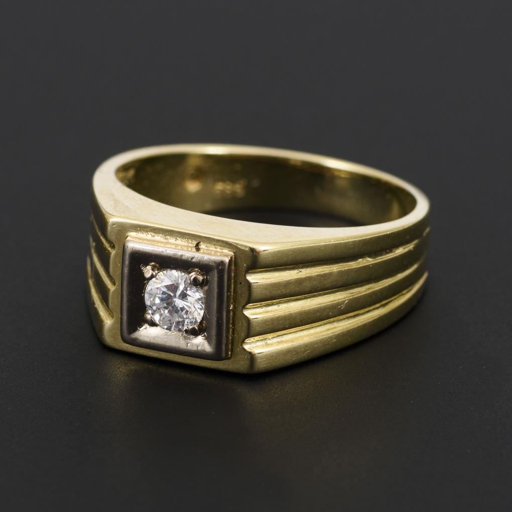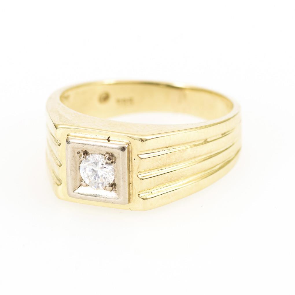 Gelbgold 585 gestempelt. Brillant ca. 0,25 ct. Ringgröße 58. 7,1 g.