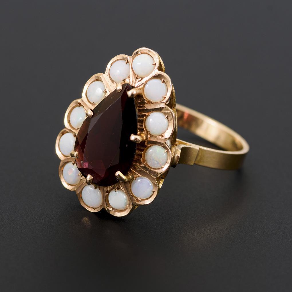 Sie befinden sich hier: Startseite Kategorien Schmuck Ring mit Granat und Opalen