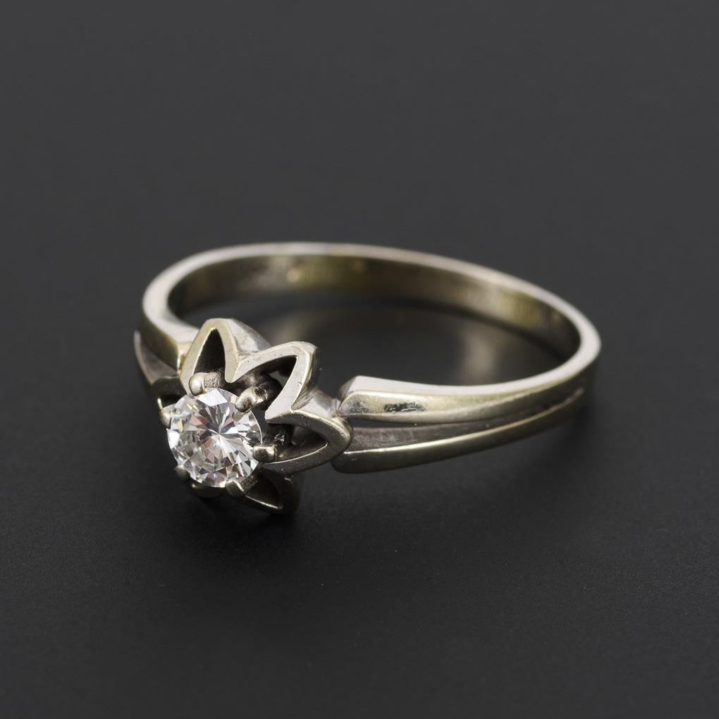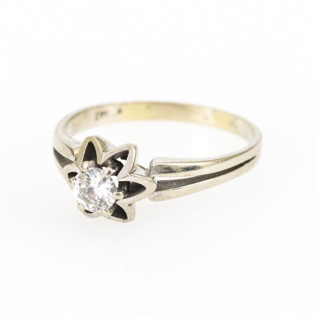 Weißgold 585 geprüft, undeutlich gestempelt. Brillant ca. 0,37 ct. Ringgröße 60. 3,5 g.