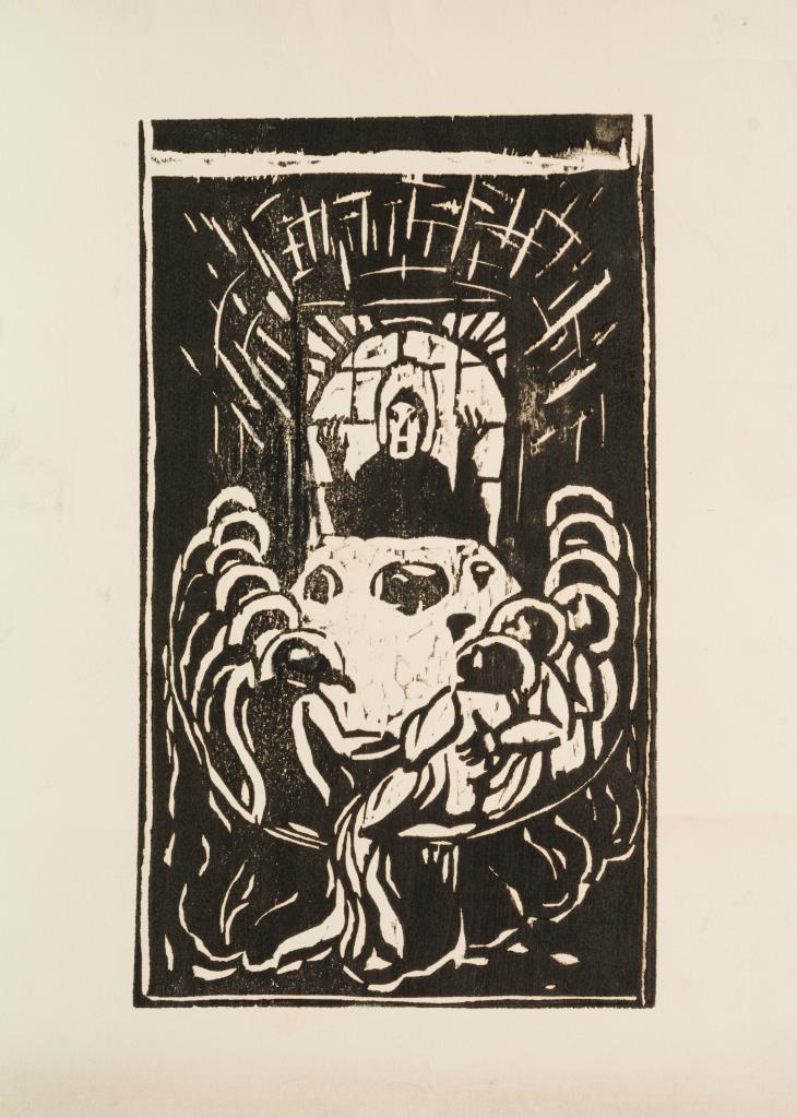 9-teiliger, expressionistischer Zyklus mit Darstellungen aus dem Leben Jesu, darunter die Geburt, Christus am Ölberg, das Abendmahl, Kreuzigung, Grablegung und Himmelfahrt. Teils mit Knicken, kleinen Defekten und Stockflecken.