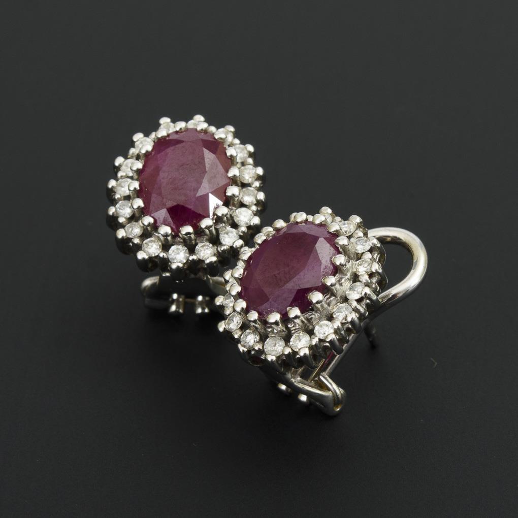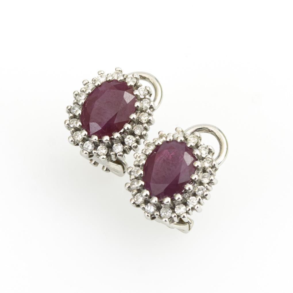 Entourage-Ohrsteckerpaar mit Rubinen und Brillanten.