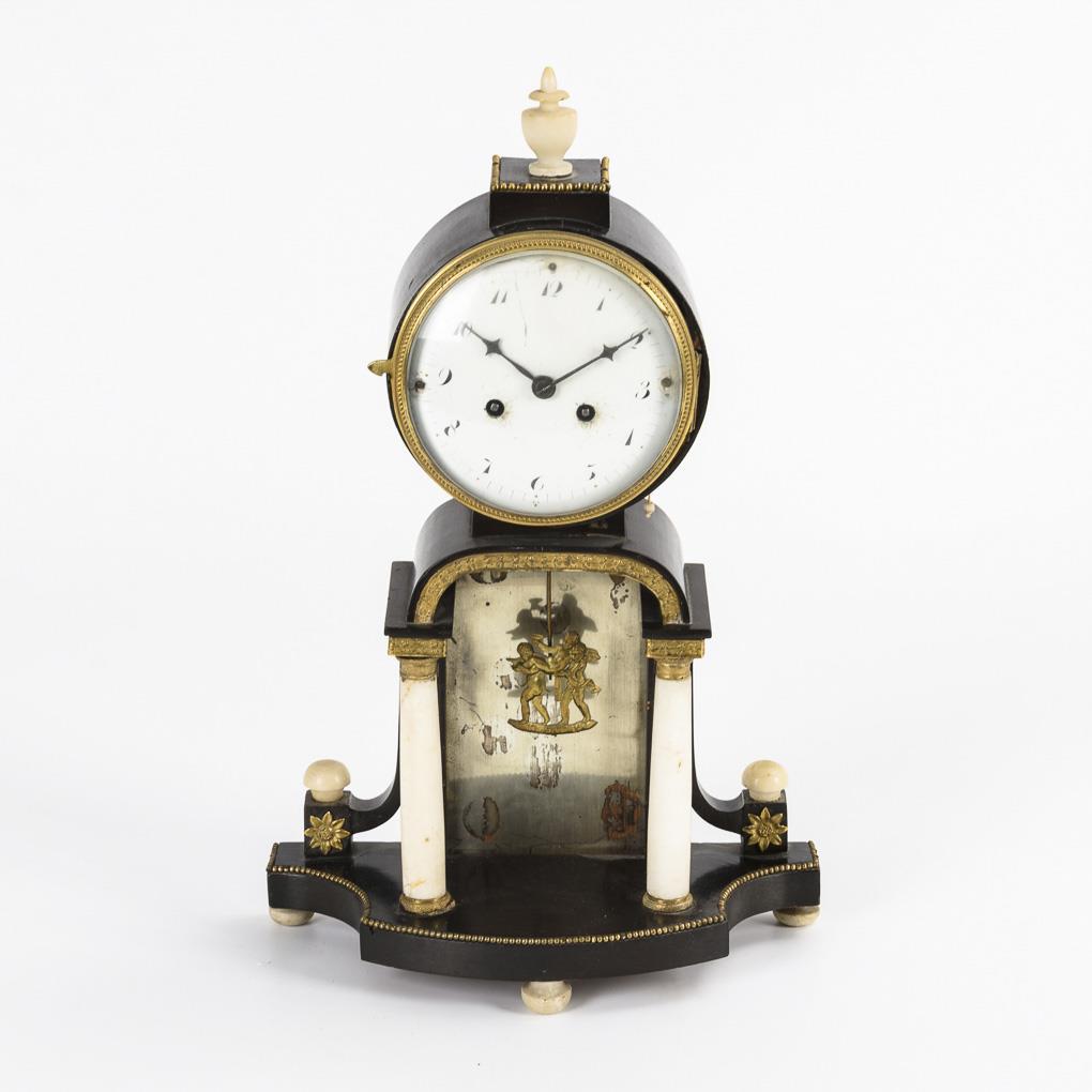 Kleine Portaluhr mit Alabastersäulen.