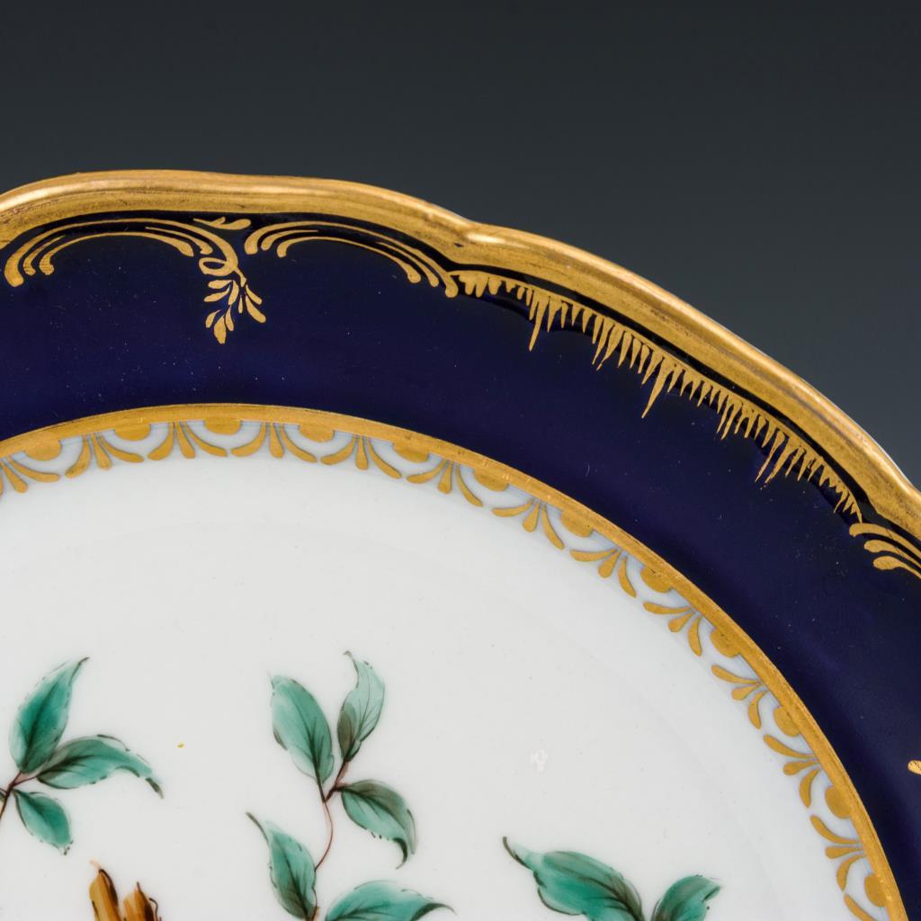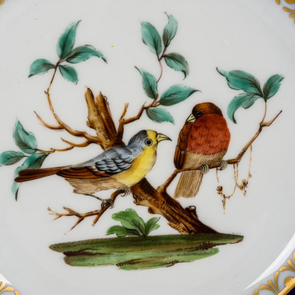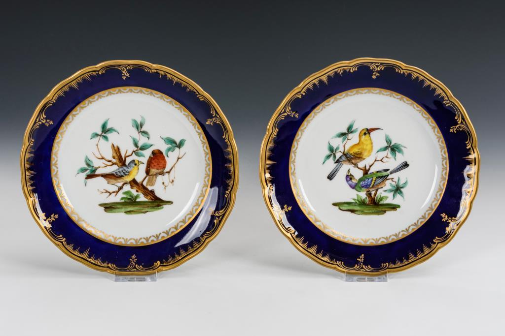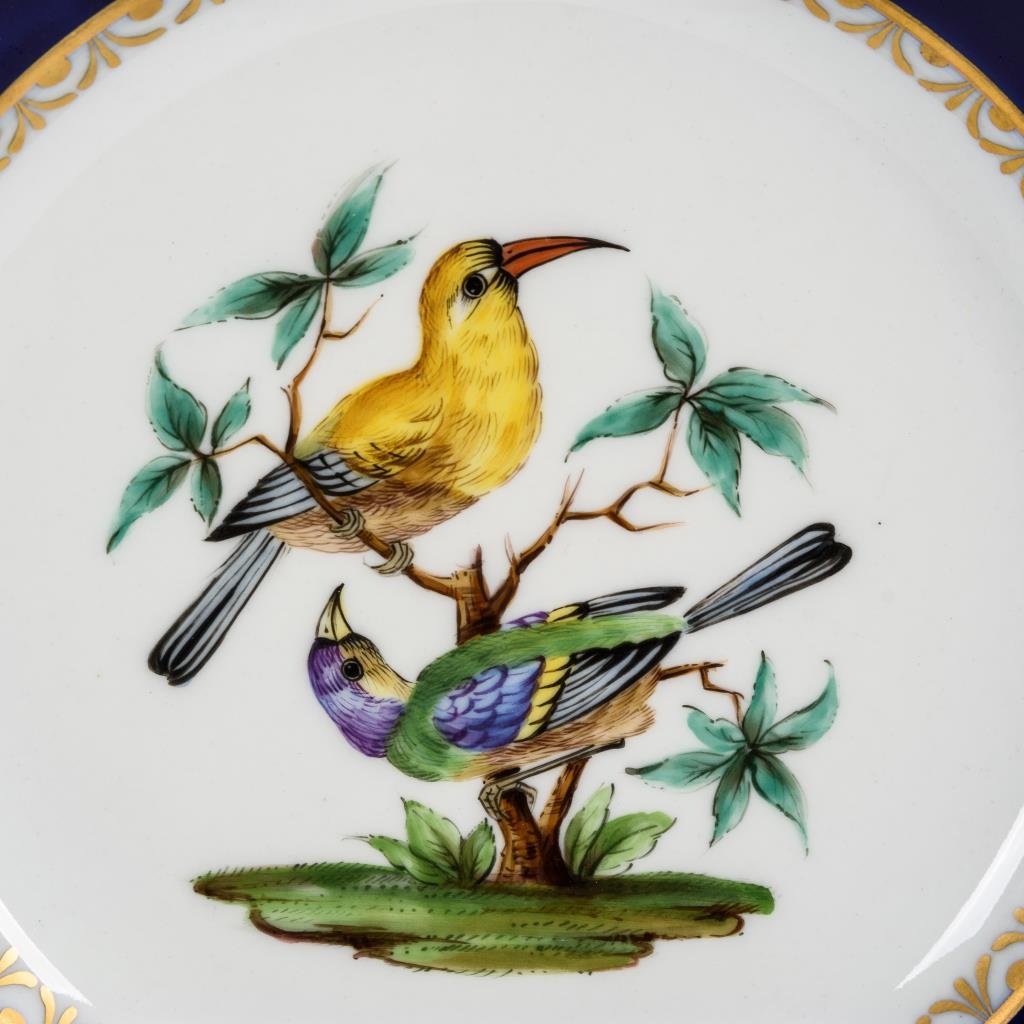 Form "Neuglatt". Mit kobaltblauer Fahne und einem Vogelpaar im Spiegel.