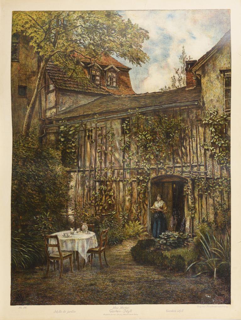 Original-Künstlersteinzeichnung No. 56, Merfeld & Donner, Leipzig. Wandschmuck-Verlag. Mit Rissen am Rand.