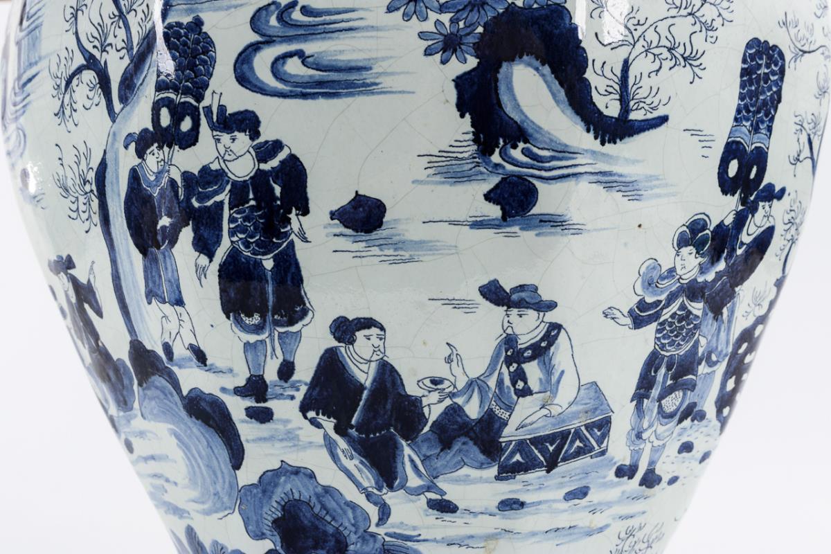 Große Fayence-Vase mit Chinoiserien.