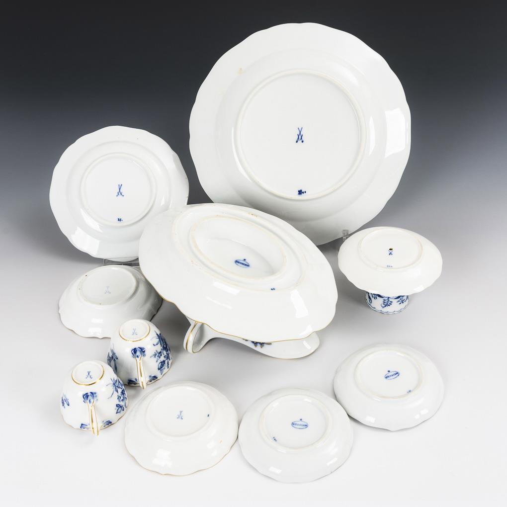 10 Porzellane mit Blaumalerei.
