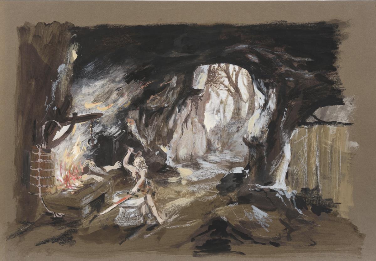 Darstellungen aus den Stücken "Lohengrin", "Tosca auf dem Trampolin", eines Birkenwäldchens sowie einer Gesellschaft beim Karneval in Venedig.