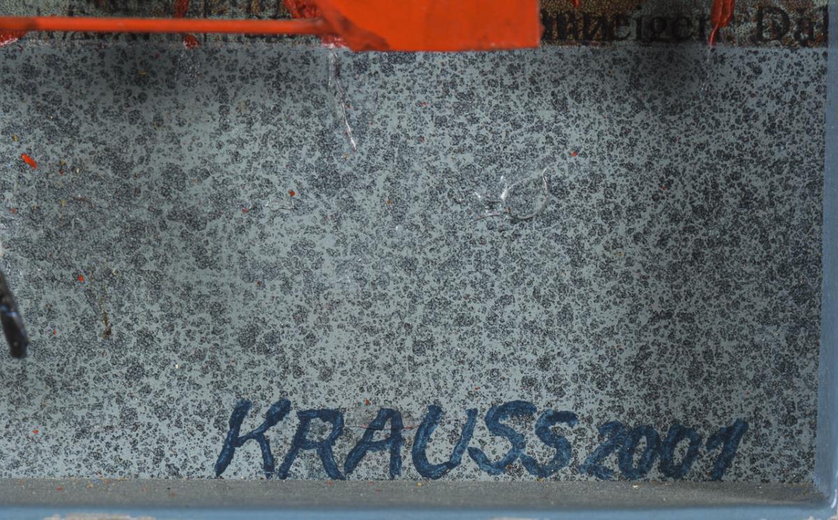 Mischtechnik mit figürlichen Metallapplikationen. Rechts unten signiert, verso betitelt. Datiert: 2001.