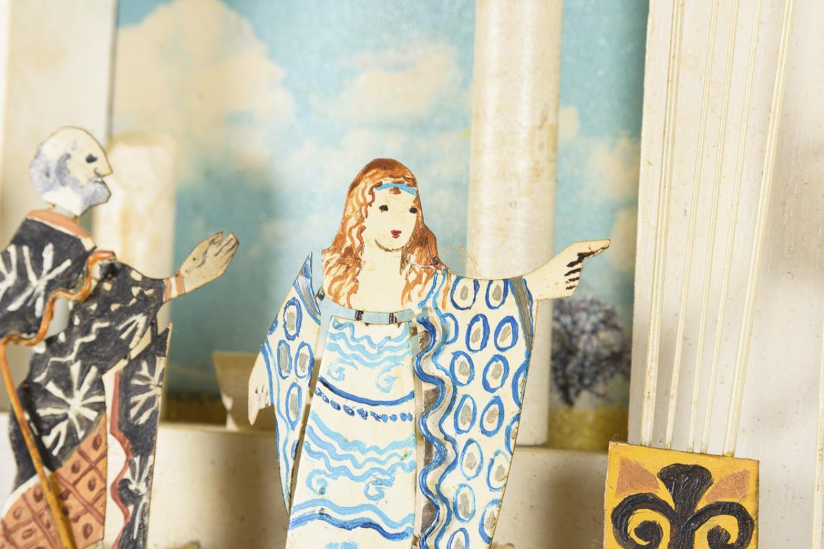 Die Figuren in antikisierendem Bühnenbild vor Wolkenhimmel.