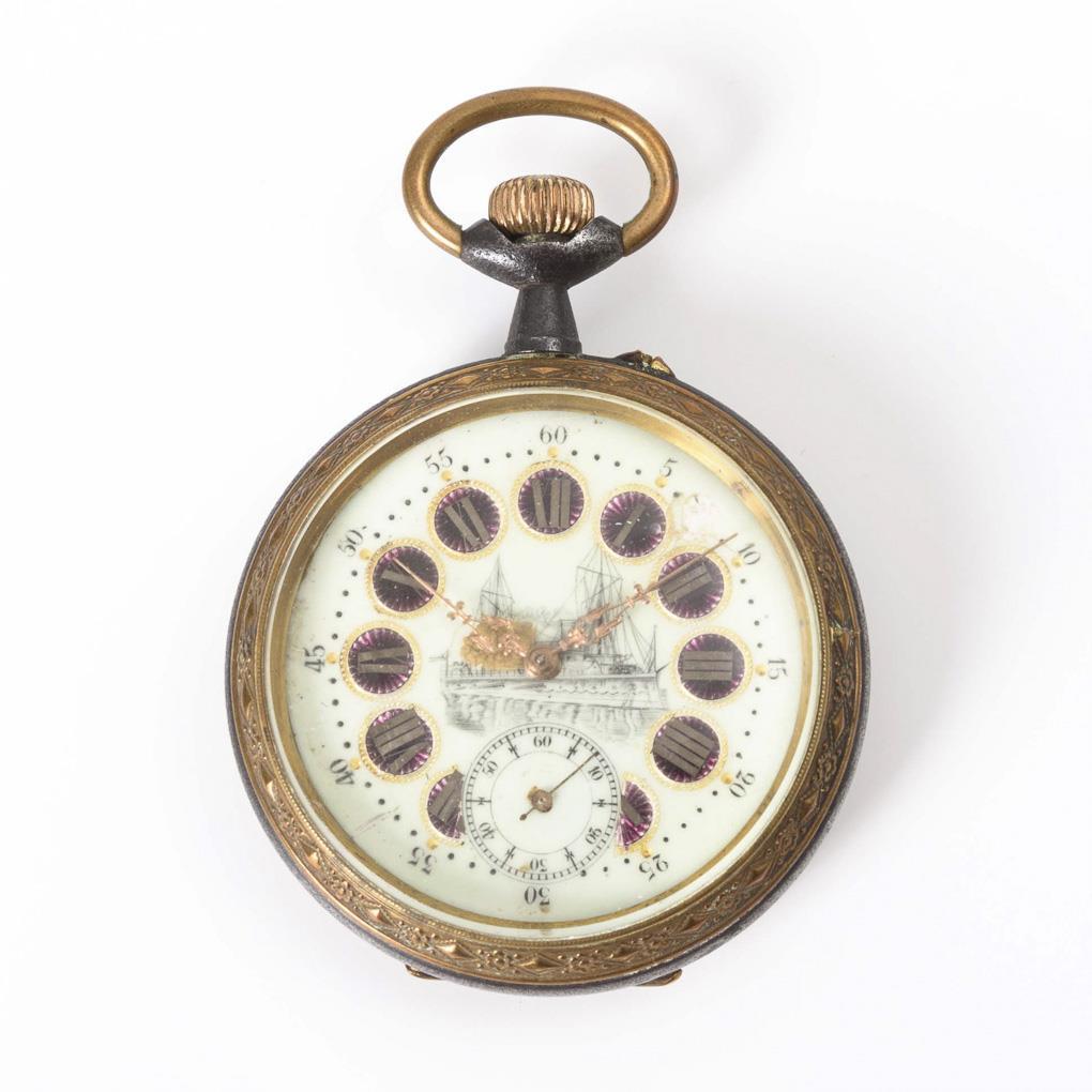 Große Taschenuhr mit Schifffahrtsmotiv.