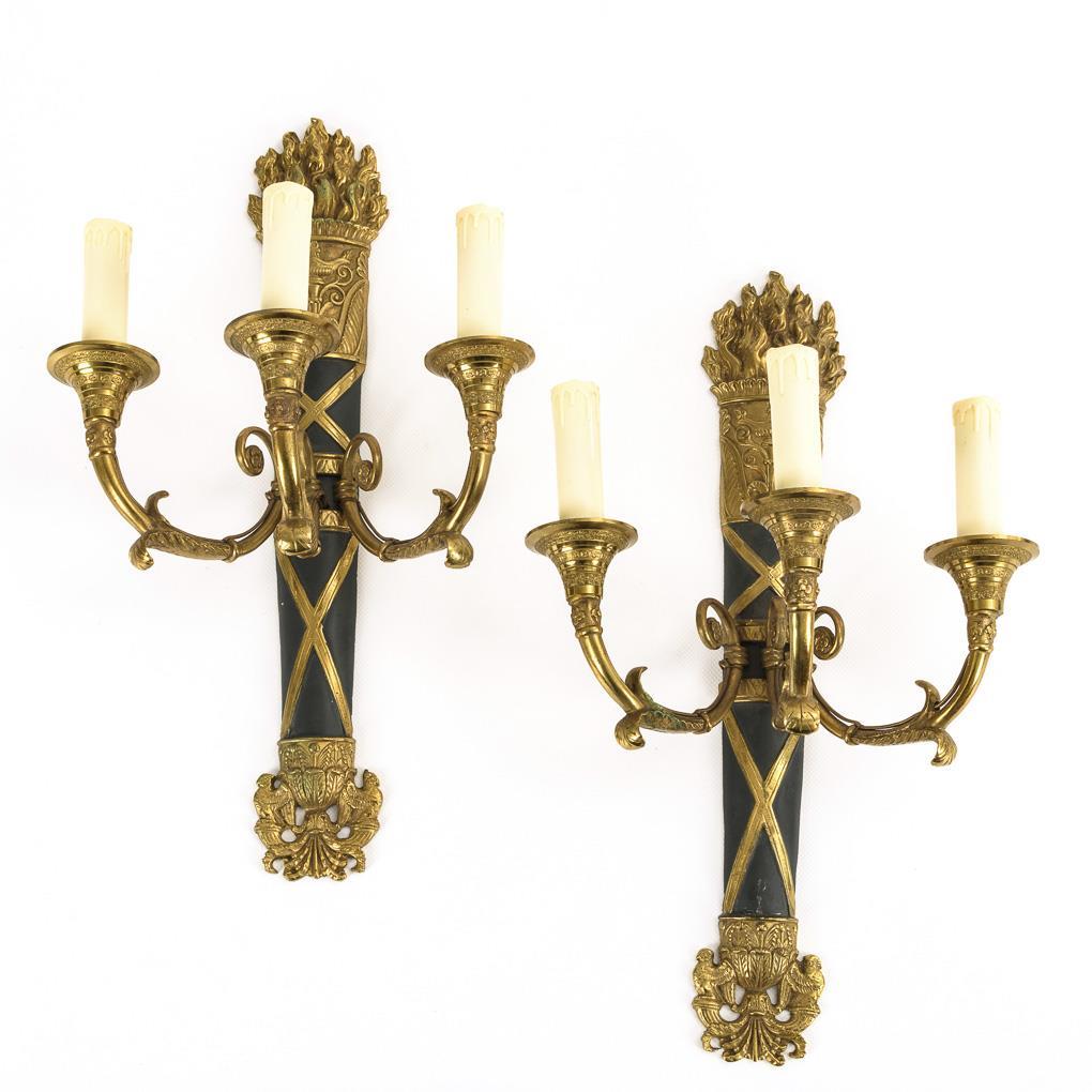 Paar 3-flammige Wandleuchter im Empire-Stil.