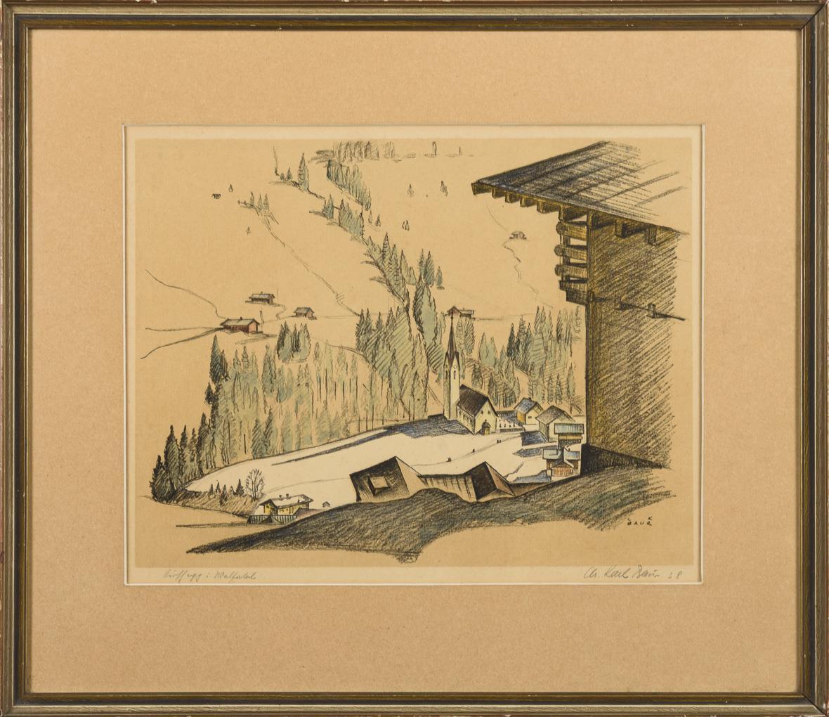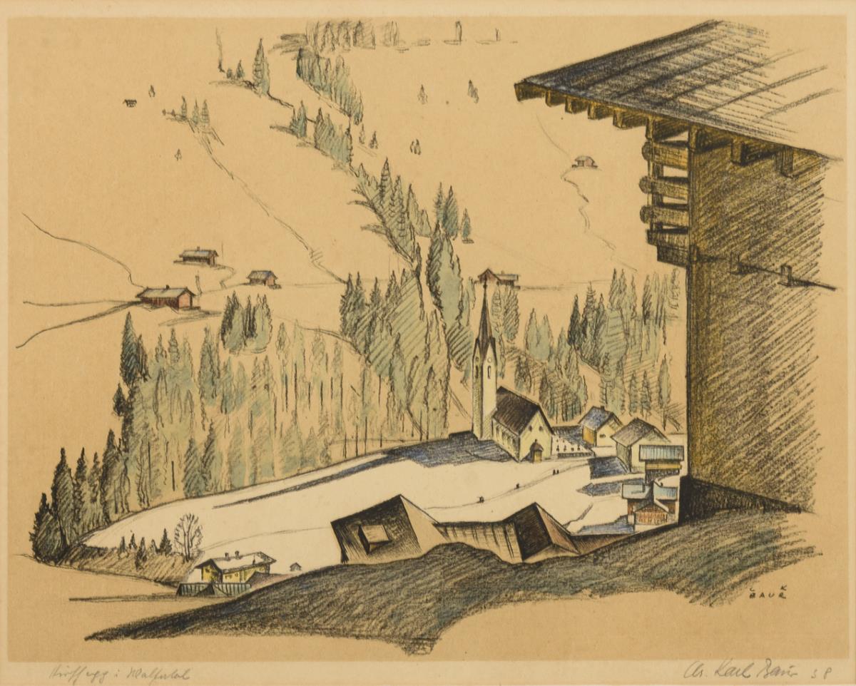 Aquarellierte Lithografie. Bleistiftsignatur. [19]38.