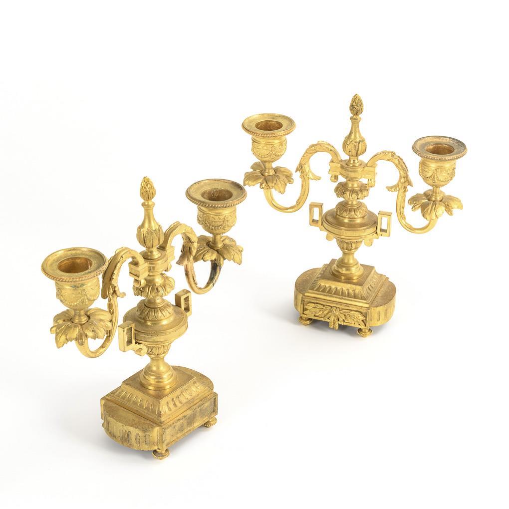 Paar 2-flammige Kerzenleuchter im Louse-Seize-Stil. Barbedienne.
