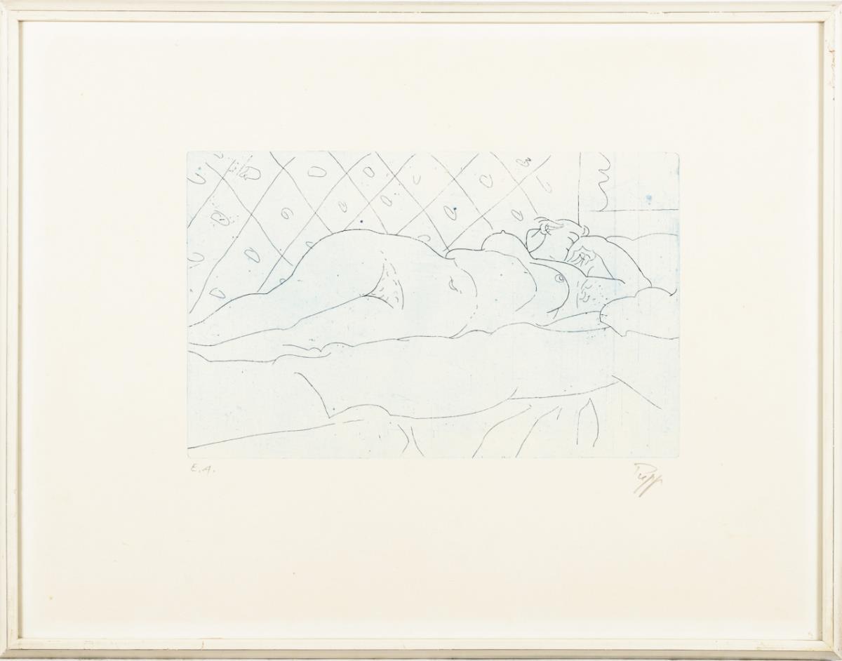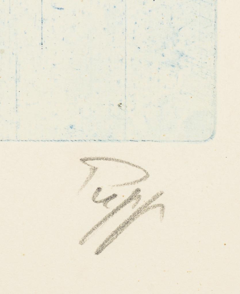 Radierung in Blau. Bleistiftsignatur. Künstlerexemplar "e.a.".