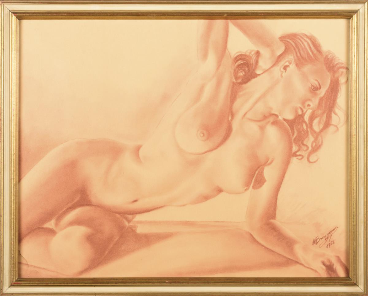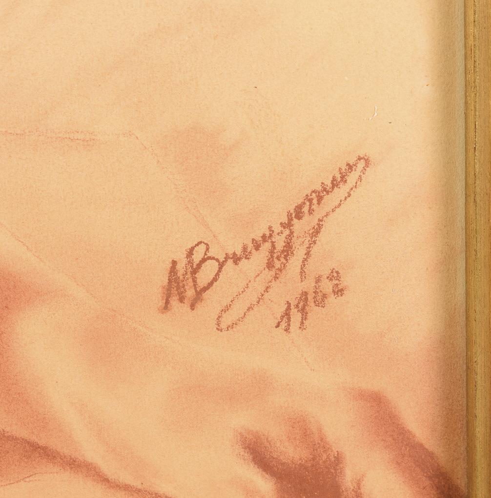 Rötelzeichnung. Rötelsignatur. Datiert: 1962.